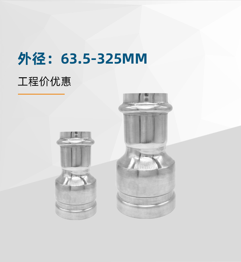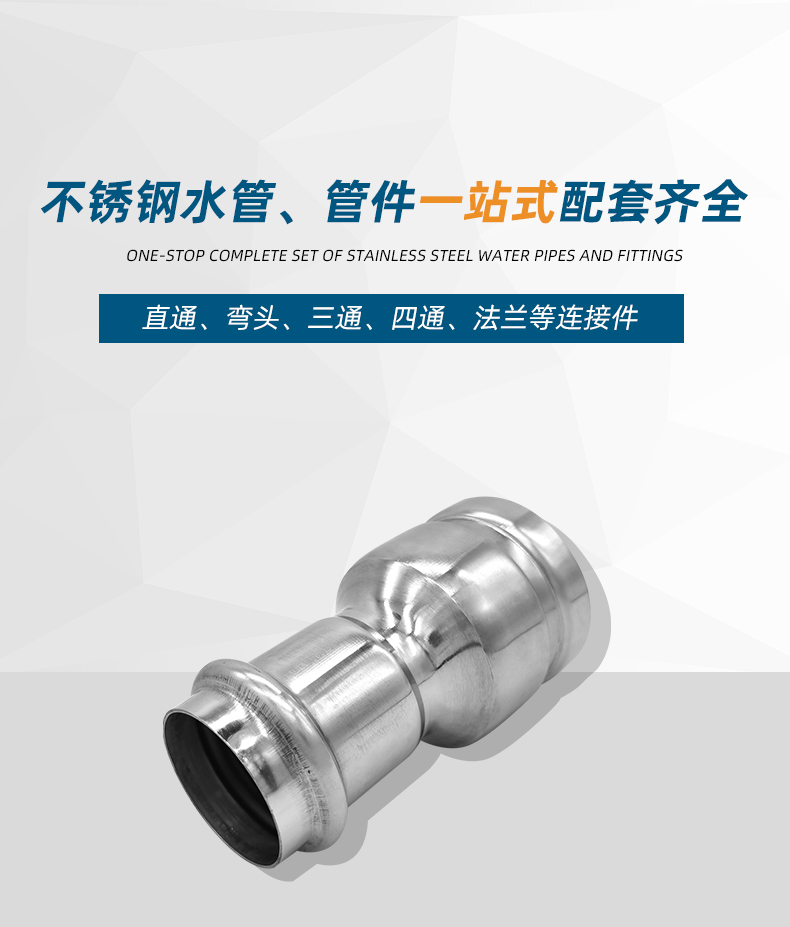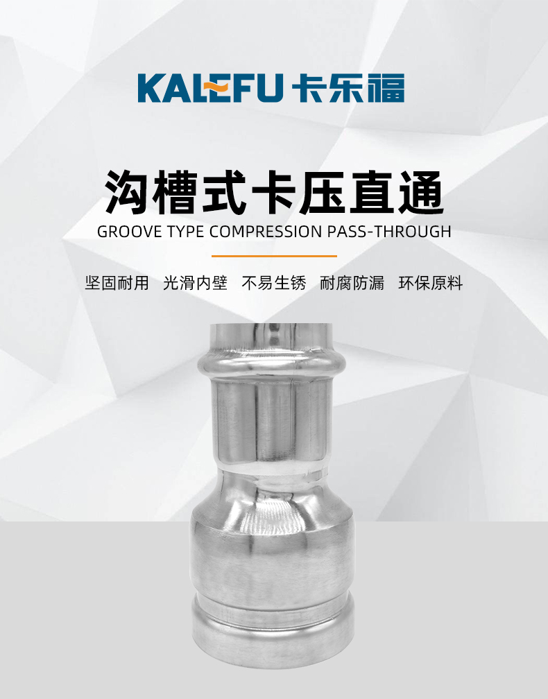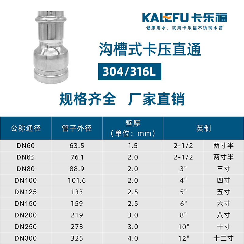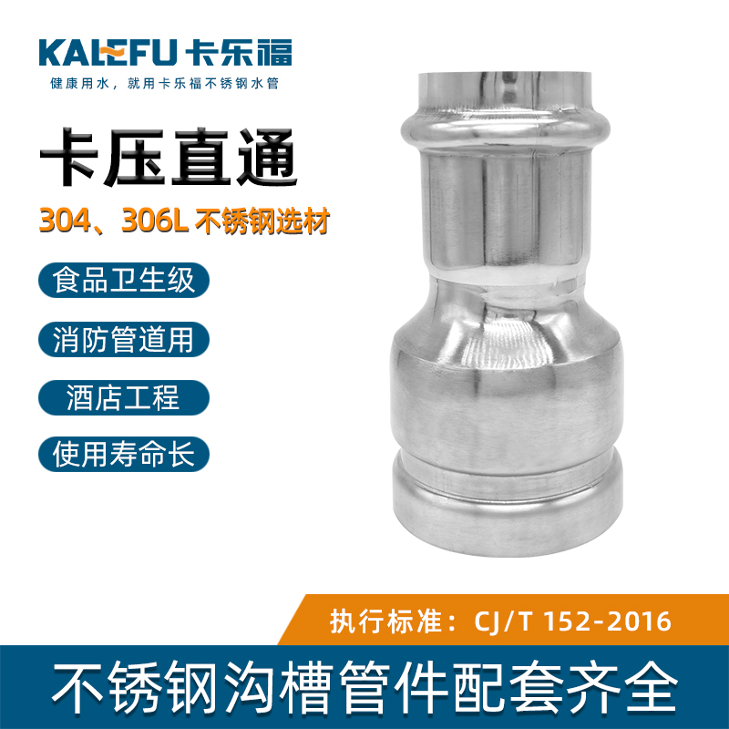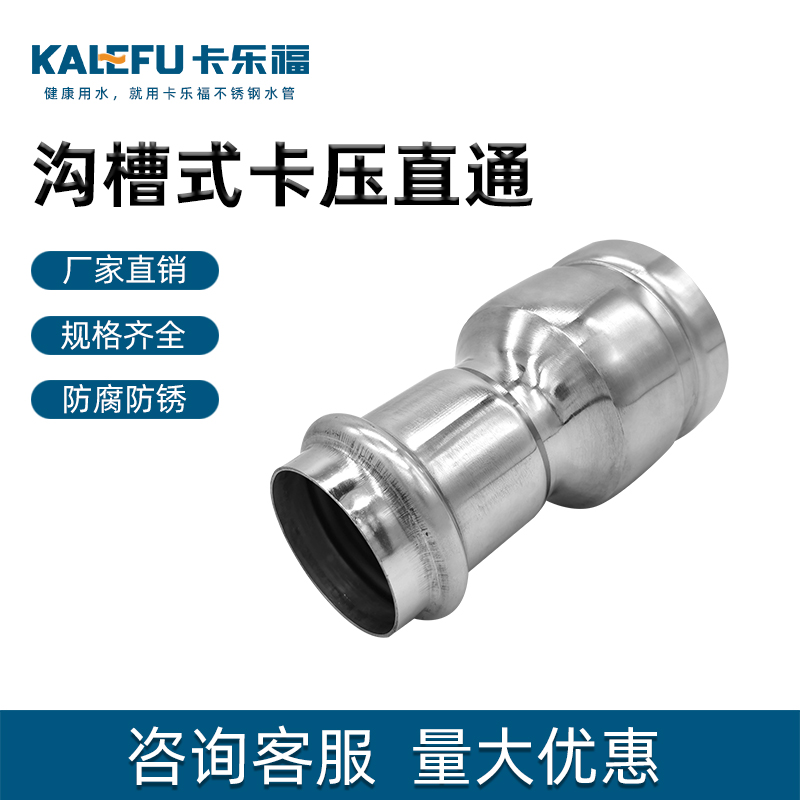 不銹鋼水管溝槽管件,溝槽式卡壓直通,304 316L食品級不銹鋼材質,DN60-DN300通徑。本溝槽式卡壓直通執行標準CJ/T 152-2016.